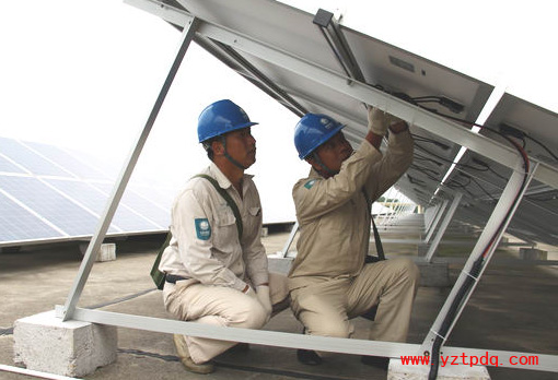 2014年9月16日,國(guó)網(wǎng)揚(yáng)州市江都供電公司工作人員深入基層,來(lái)到“江蘇光伏賣電第一人”朱啟杰以及其他分布式光伏發(fā)電用戶,為他們解決光伏發(fā)電和并網(wǎng)中遇到的問(wèn)題,促進(jìn)江都分布式光伏發(fā)電產(chǎn)業(yè)的快速發(fā)展。目前,揚(yáng)州市江都區(qū)有32家分布式光伏發(fā)電用戶申請(qǐng)并網(wǎng),已經(jīng)并網(wǎng)20家,其中企業(yè)為3家,個(gè)人為17家,并網(wǎng)總?cè)萘繛?10千瓦,在江蘇省各縣(市、區(qū))名列前茅。圖為江都供電公司員工為揚(yáng)州永力電子公司120千瓦分布式光伏發(fā)電裝置檢修線路。