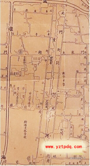小編查找志書中地圖發(fā)現,位于府衙、縣衙的東面,從舊城北門水關至南水關的這段市河,沿河附近設有縣學(現揚大附小址)、文魁樓(今四望亭)、文廟(今政協(xié)),河上架有文津橋,橋上有文昌閣,上曾懸有“邗上文樞”匾額……揚州的各類文化殿堂都緊臨這段市河。相傳在古代這段市河被視為文脈,因此這段市河在民間被稱為“文河”。